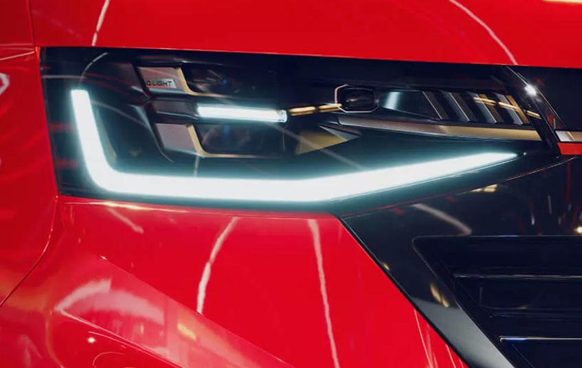 Aizmugurē skatienu piesaista divdaļīgais jumta spoileris, bet priekšpusē sarkanā akcenta līnija radiatora režģī uzreiz raisa asociācijas ar Polo GTI vai Golf GTI.