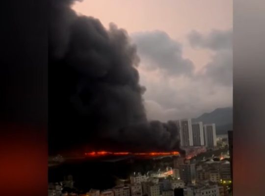 Otrdienas rītā Šeņdžeņas rūpnieciskajā parkā izcēlies liels ugunsgrēks – bija aizdegusies daudzstāvu autostāvvieta, kurā uzglabājās testos izmantotie elektroautomobiļi