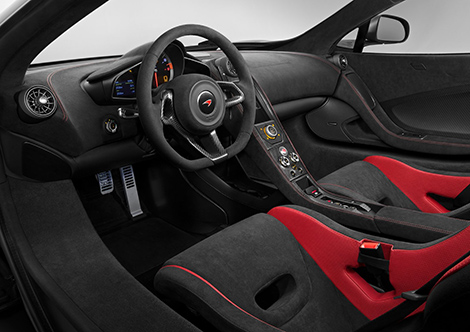 Jaunajam superauto ir oriģinālas konstrukcijas aerodinamiskā aprīkojuma komplekts, kas nodrošina par 40% lielāku piespiedējspēku salīdzinājumā ar 650S, jauna un par 1,1 kg vieglāka titāna izplūdes sistēma, kā arī oglekļa šķiedras antispārns, kas ir par 50% lielāks nekā 650S. Salona apdarei izmantota alkantara un alumīnijs, bet sporta sēdekļi aizgūti no “McLaren” flagmaņa “P1.” Pircēju izvēlei sagatavotas piecas virsbūves krāsas: “Silica White,” “Delta Red,” “Napier Green,” “Chicane Grey” un “McLaren Orange.”